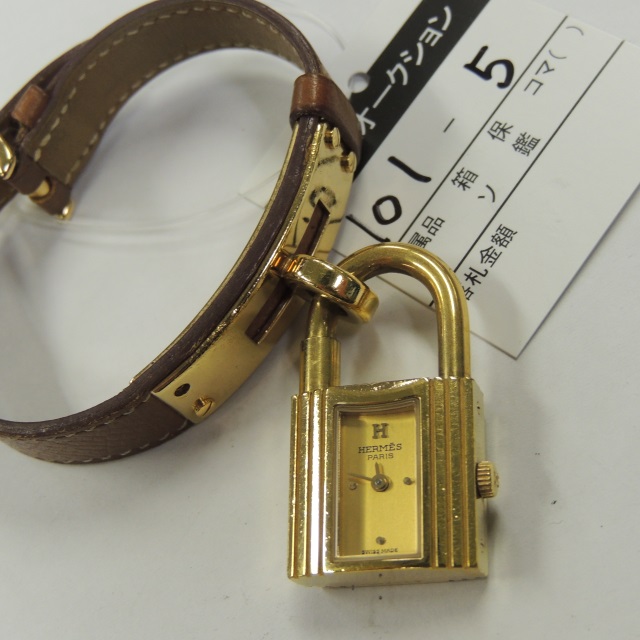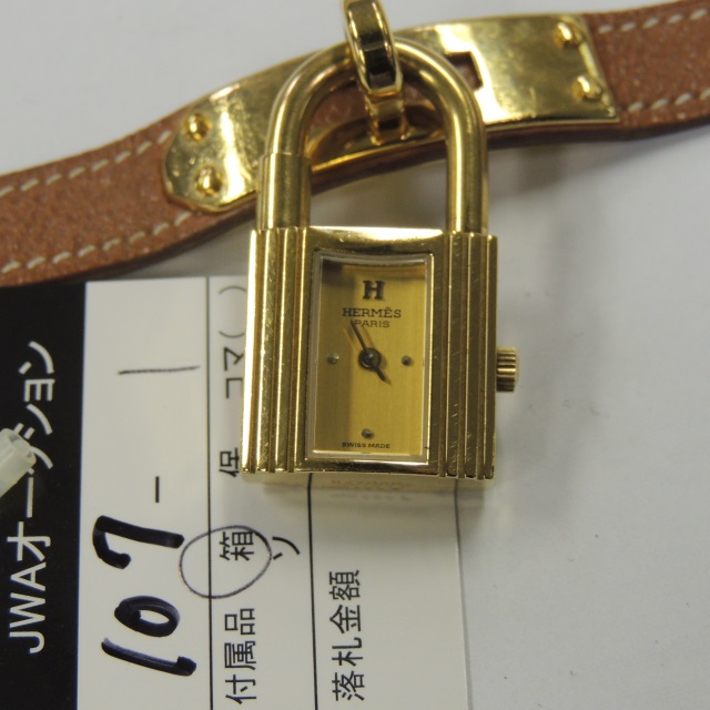 エルメス ケリーウォッチ QZ KE1.201 ロB刻印 黒 GP/革 保