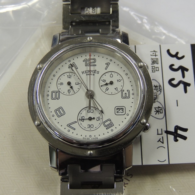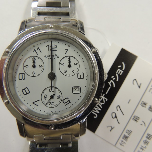 エルメス CL1.310 クリッパークロノ 白 QZ SS 箱 コマ1