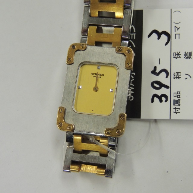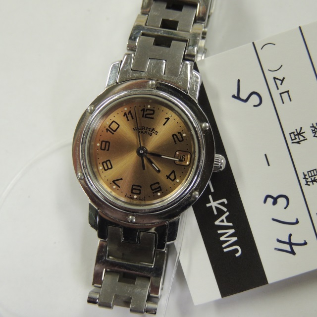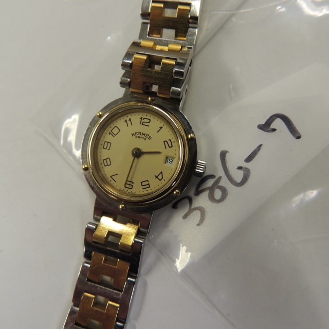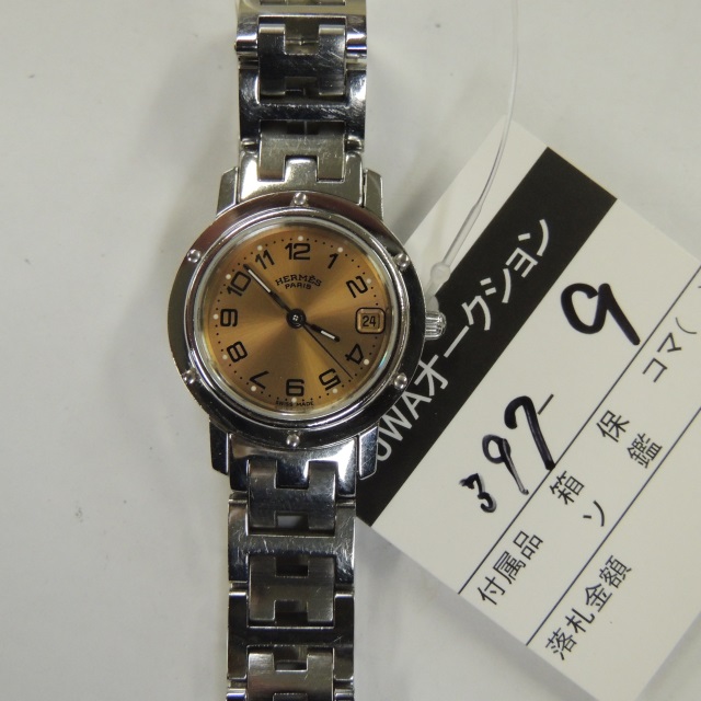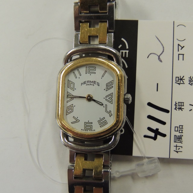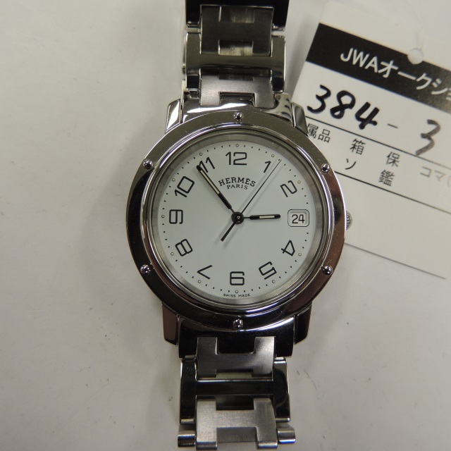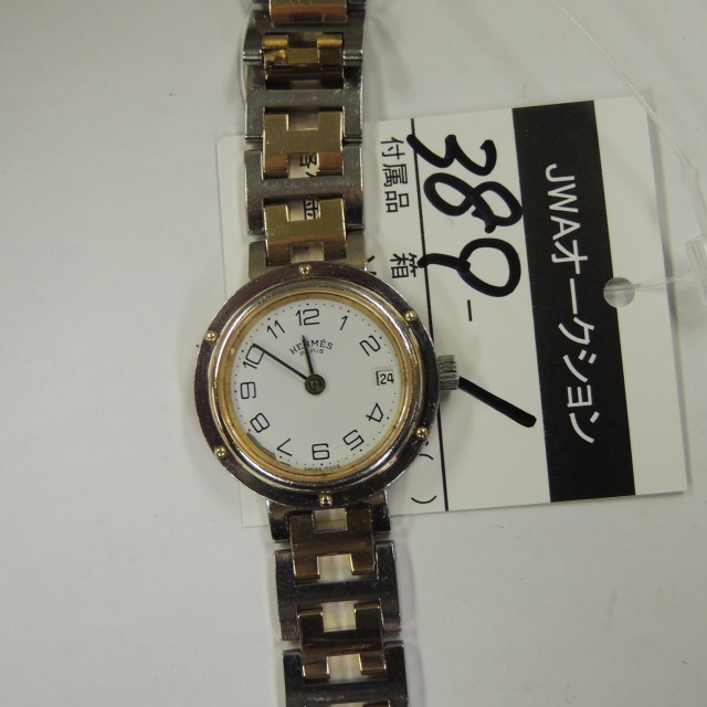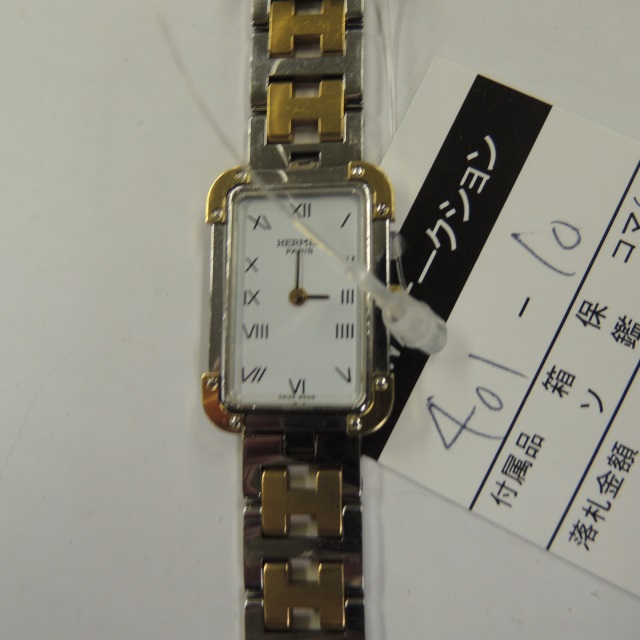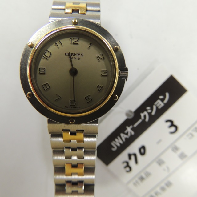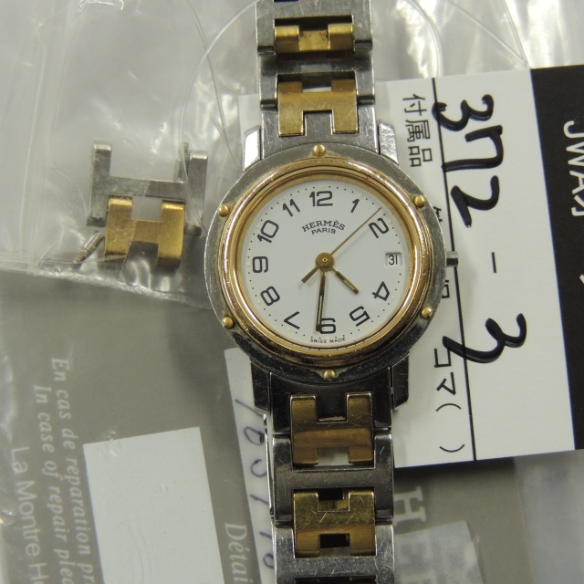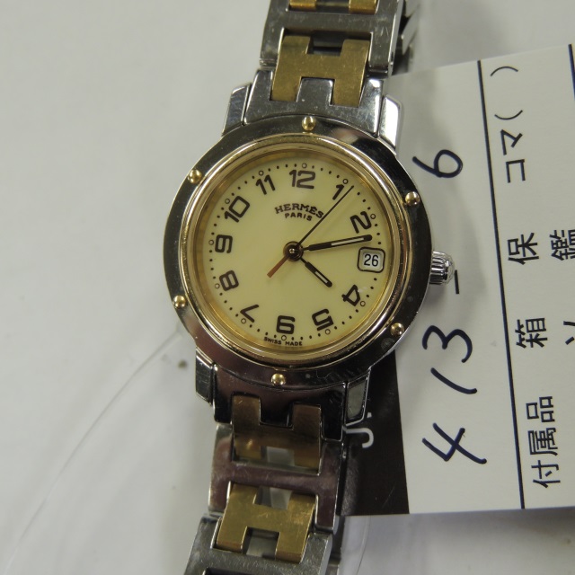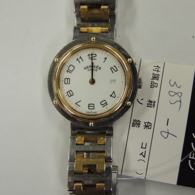 エルメス クリッパー 白 QZ 不動 リューズとれ GP/SS 箱 コマ1