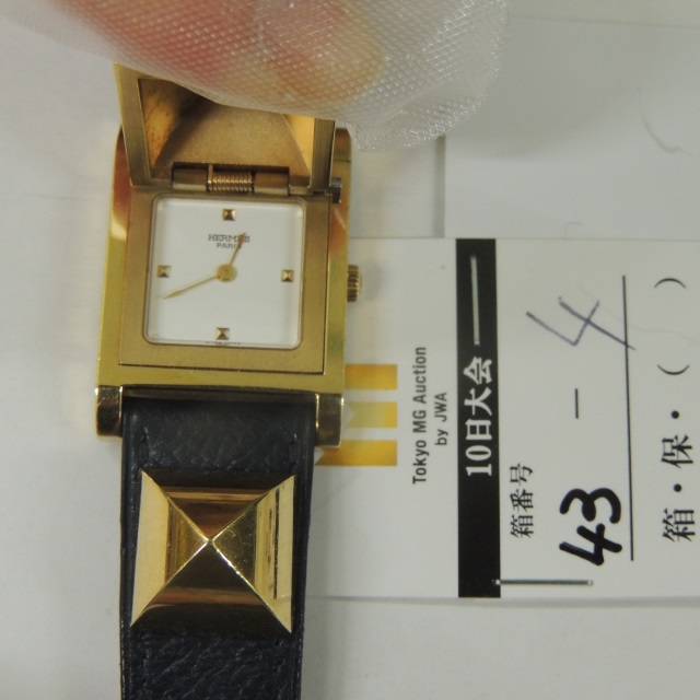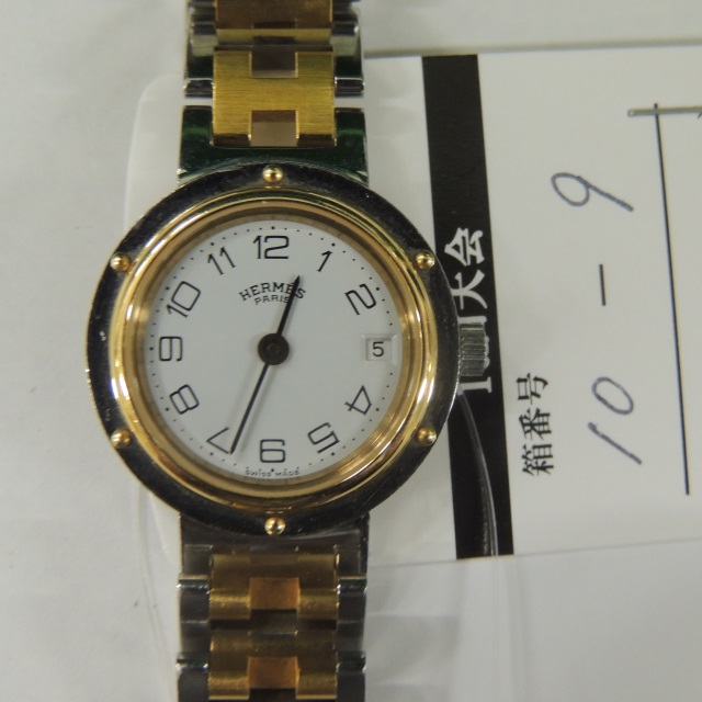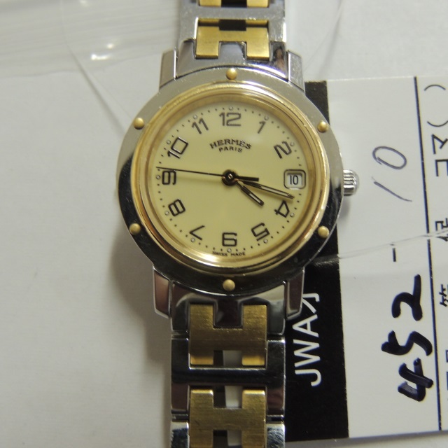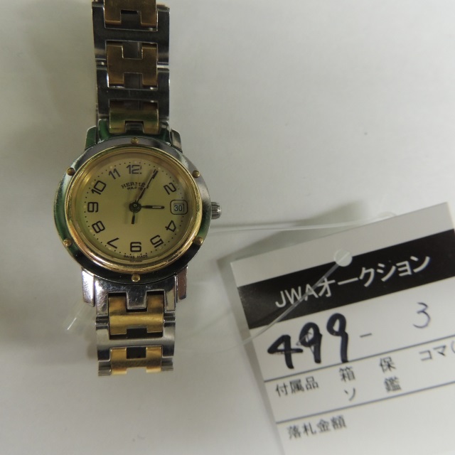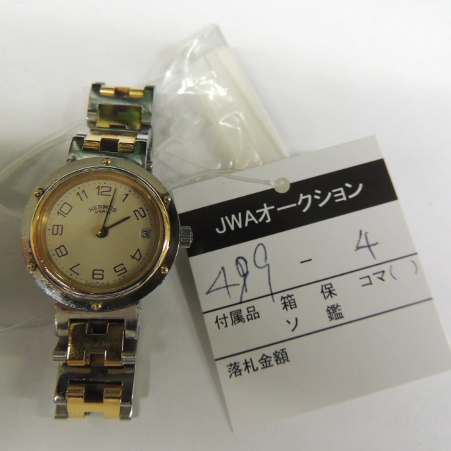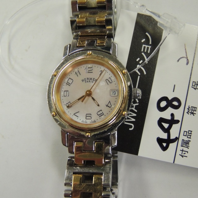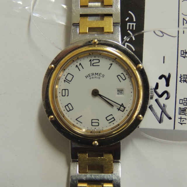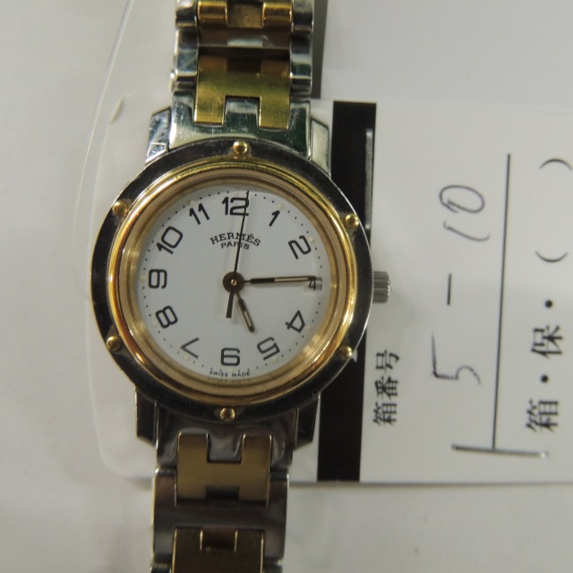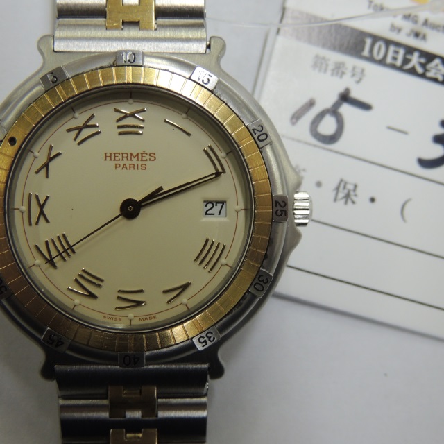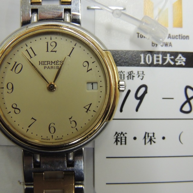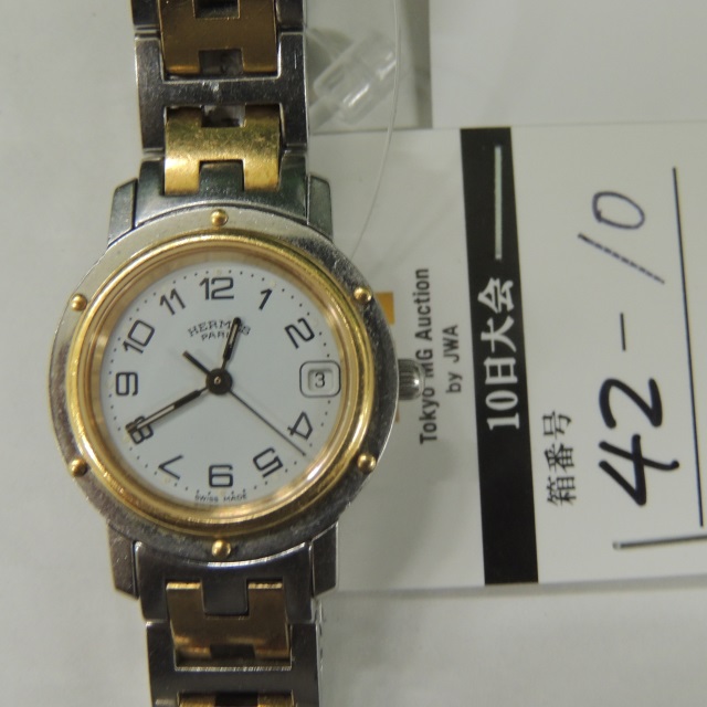 エルメス クリッパー CL4.220 アイボリー QZ SS/GP 箱 保 コマ1