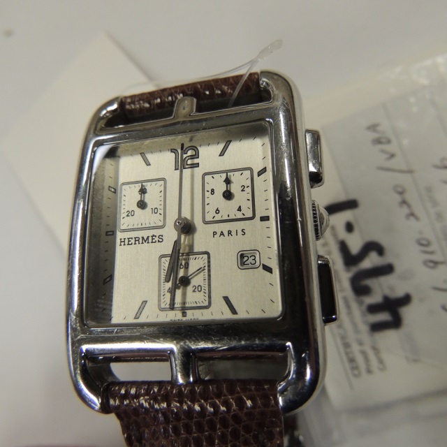 エルメス ケープコッド クロノ CC1.910 QZ 社外ベルト 純正尾錠 SS 箱 保