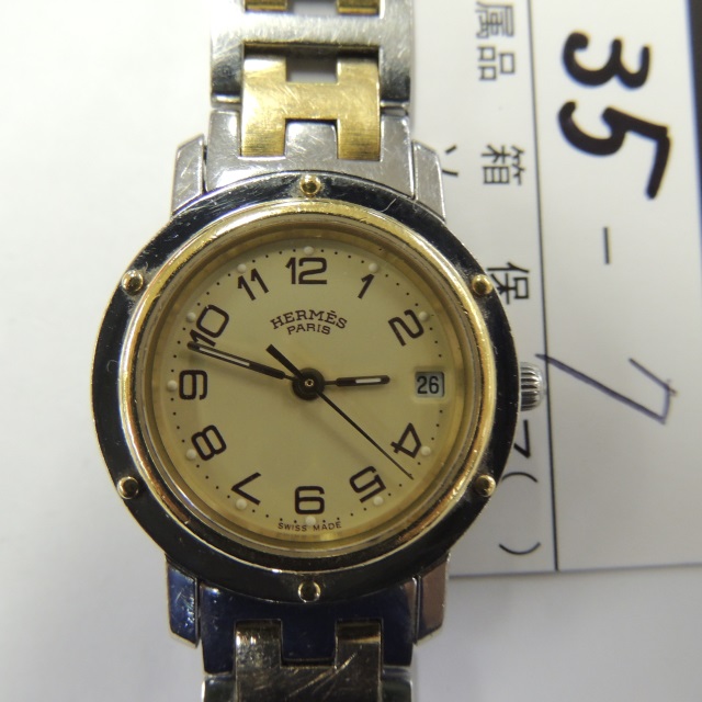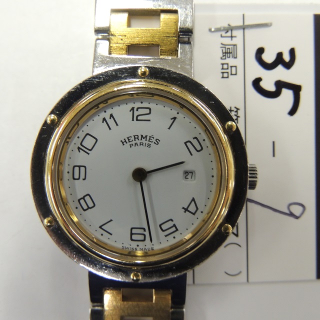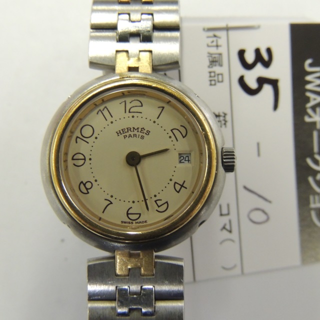 エルメス クリッパー CL3.240 白 QZ リューズ不良 SS/GP