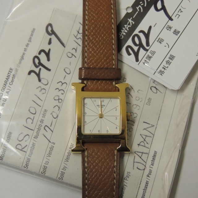 エルメス HH1.201 Hウォッチ QZ GP/革 箱 保