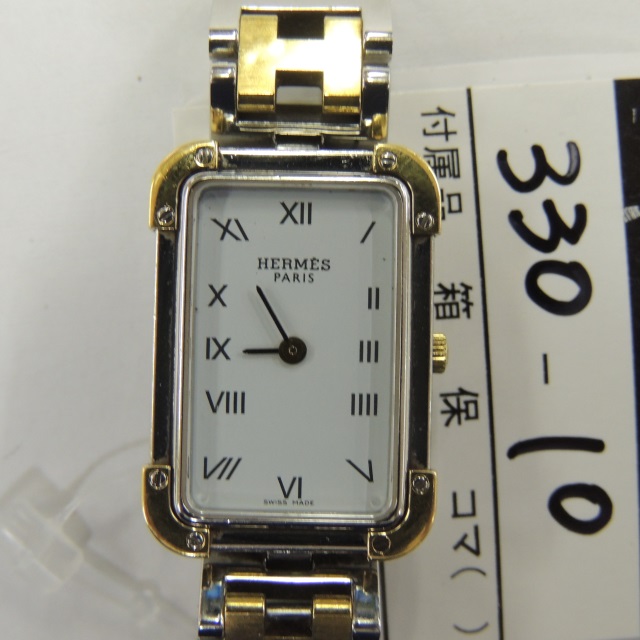 エルメス Hウォッチ HH1.210 QZ □P刻 白 SS/革 箱