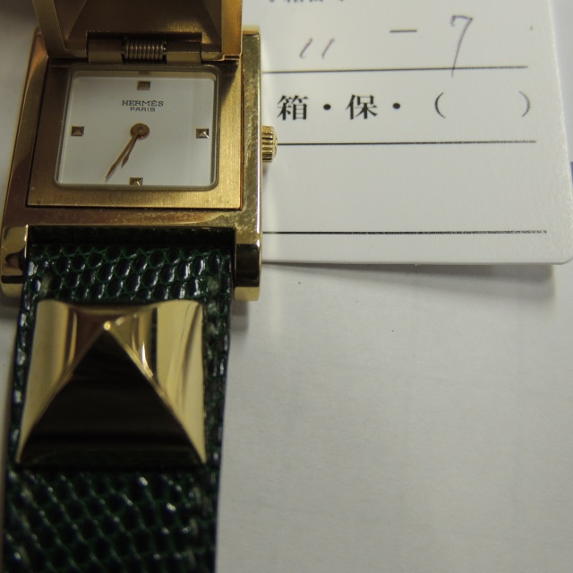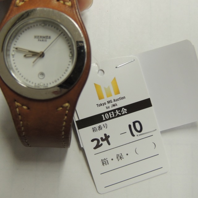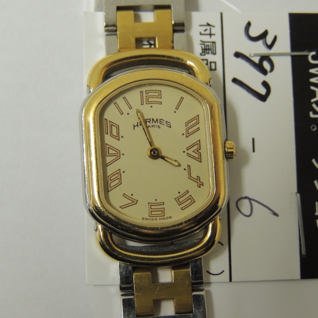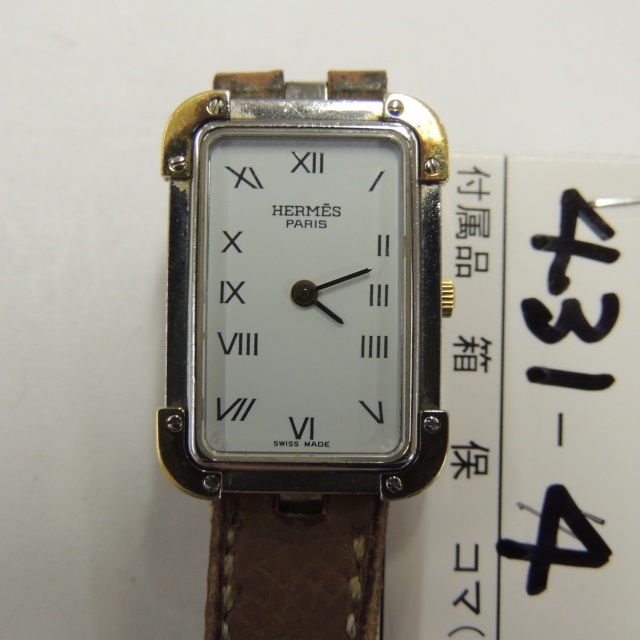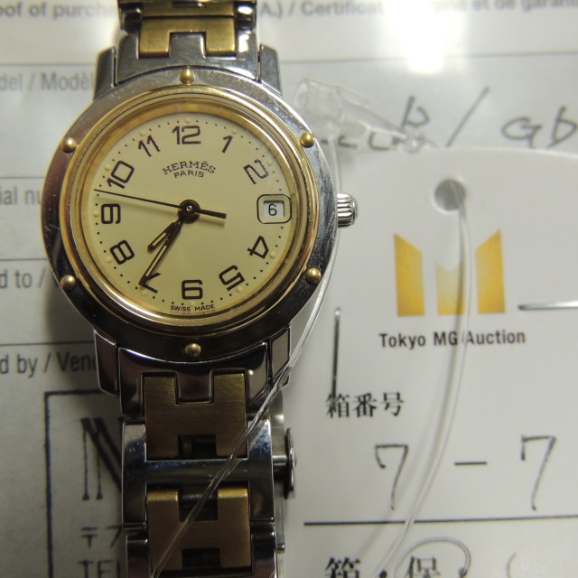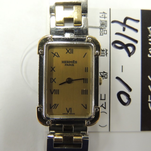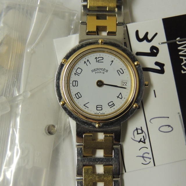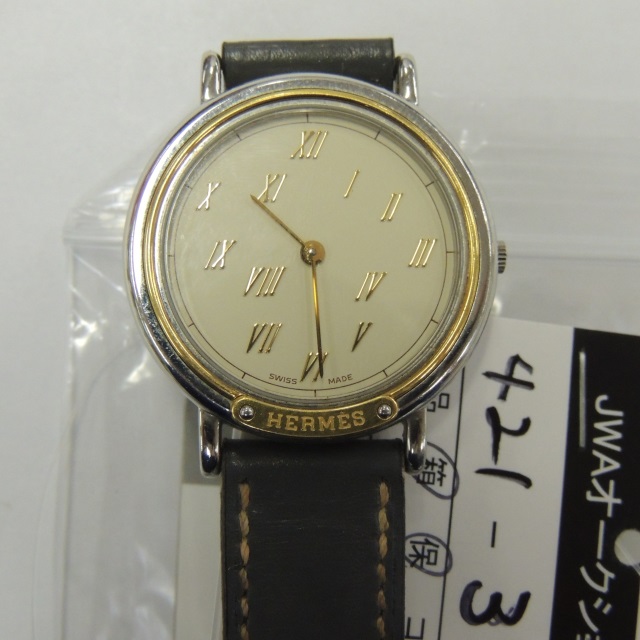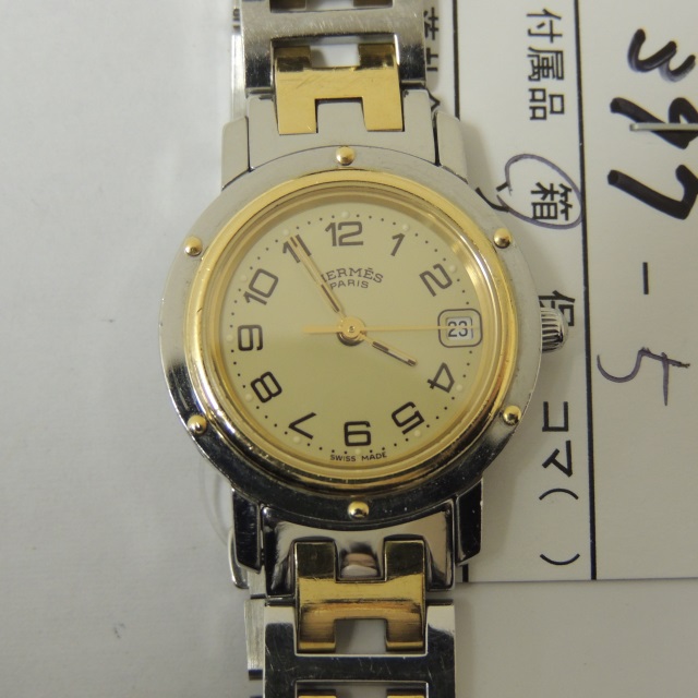エルメス クリッパー QZ 白 リューズ取 SS/GP 箱 コマ4