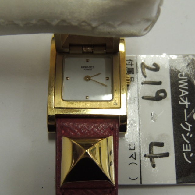 エルメス メドール 白 QZ 不動 GP/革 箱