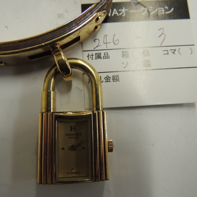エルメス ケリーウォッチ ゴールド QZ GP/革 箱