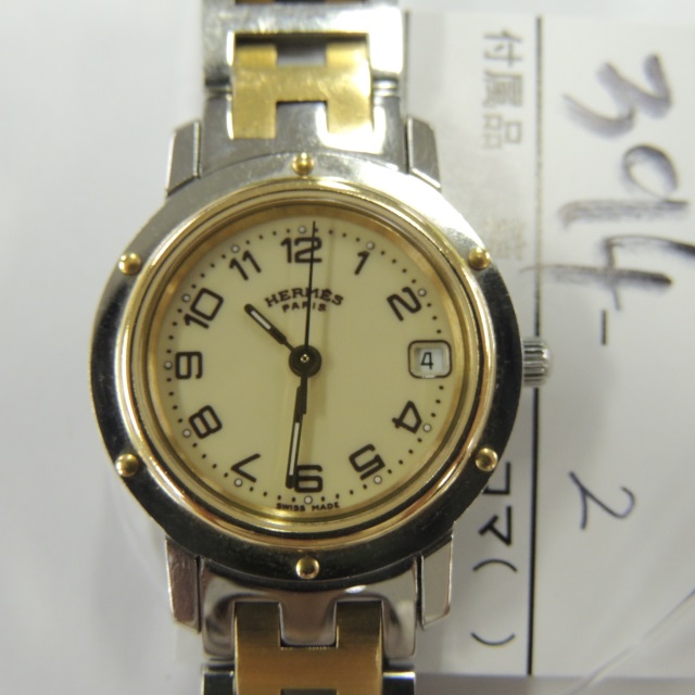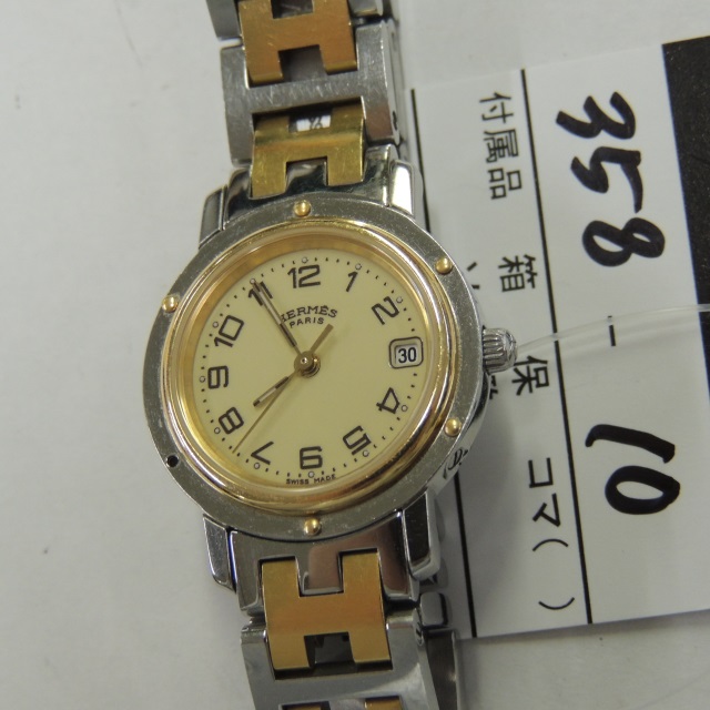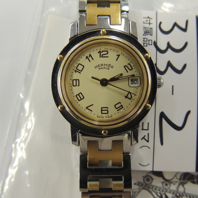 エルメス クリッパー CL4220 QZ アイボリー SS/GP