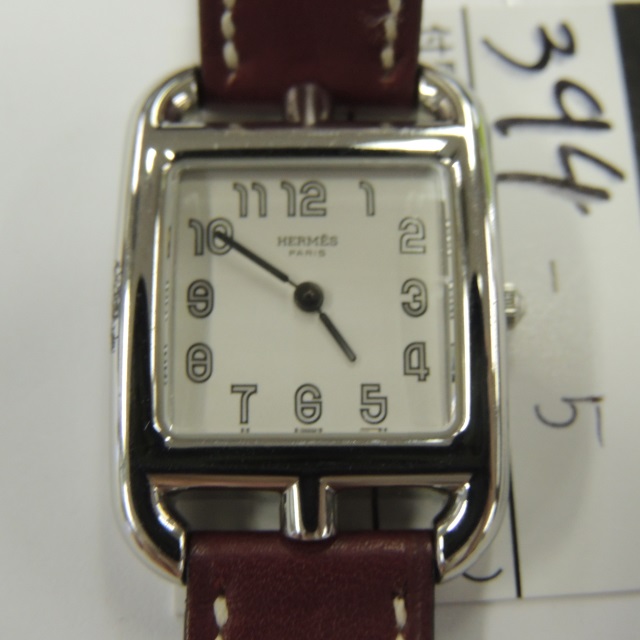 エルメス ケープコッド CC1210 QZ 白 □F刻 SS/革 ケース