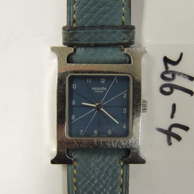 エルメス HH1.210 Hウォッチ 青 QZ SS/革 箱