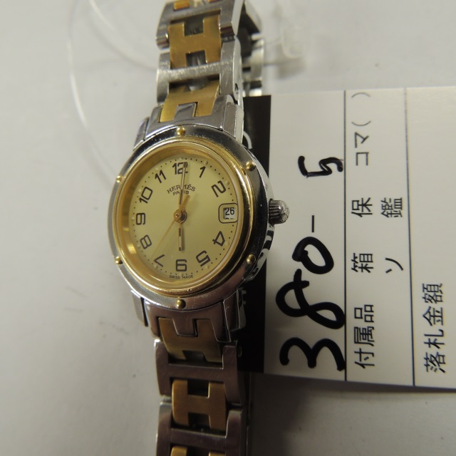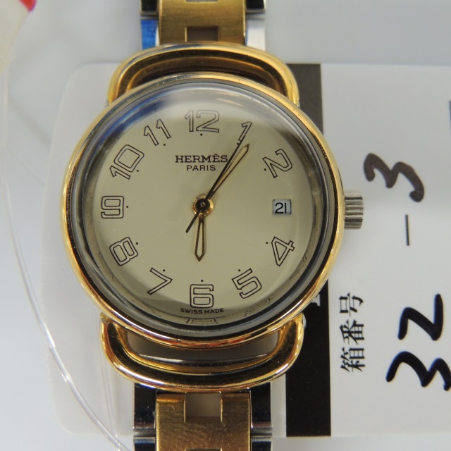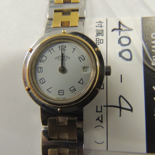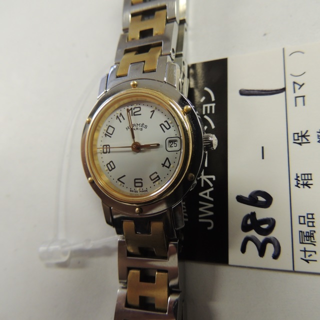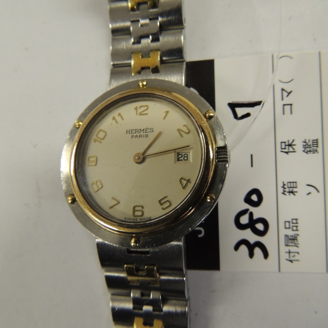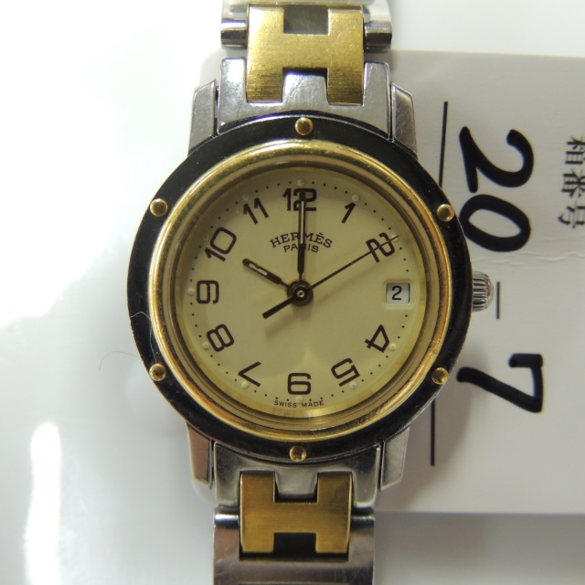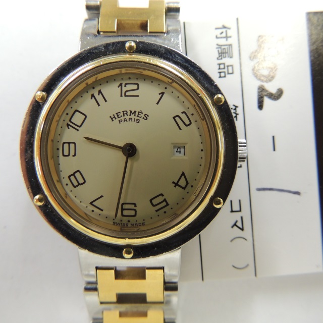 エルメス クリッパー デイト アイボリー QZ CL.4220 SS/YG 箱 コマ1