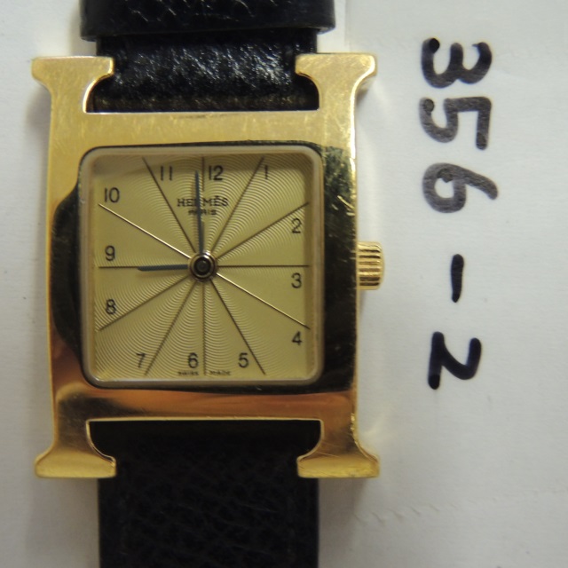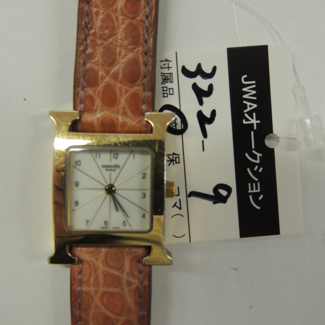 エルメス Hウォッチ QZ シャンパン □G刻 HH1.201 GP/革 ケース