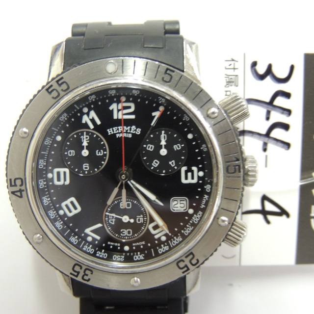 エルメス QZ クリッパークロノ クロノ不良 竜頭社外 ベゼルラバー取れ CL2.910 SS/ラバー