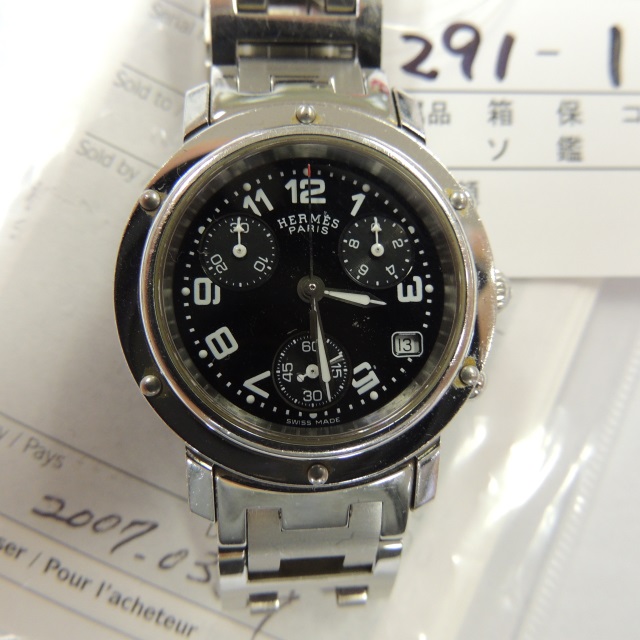 エルメス クリッパークロノ CL1.310 黒 QZ SS 保