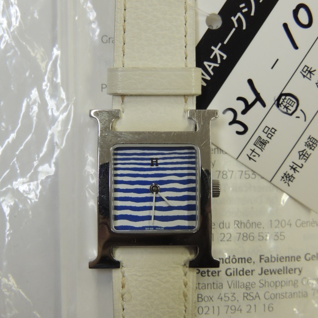 エルメス Hウォッチ HH1.210 青 □A刻 SS/革