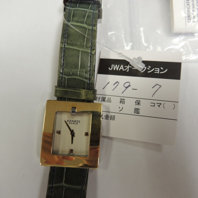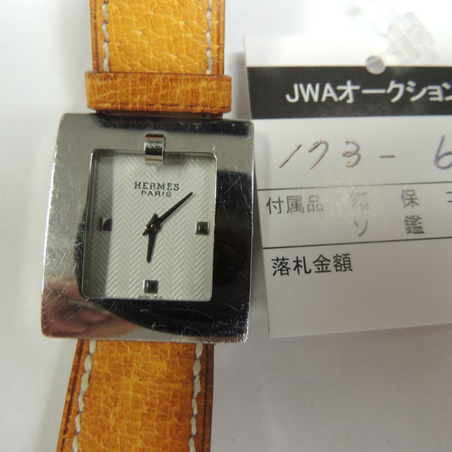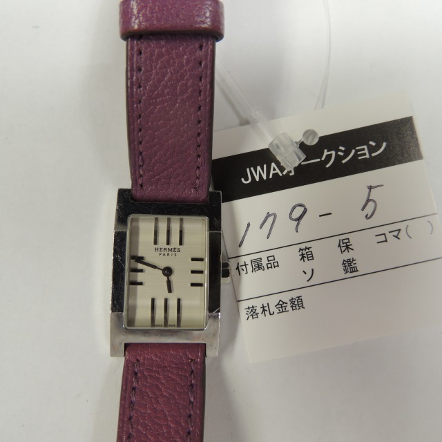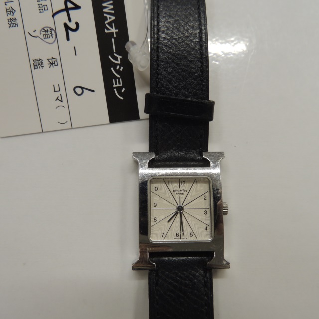 エルメス Hウォッチ HH1.210 白 SS/革 箱 保