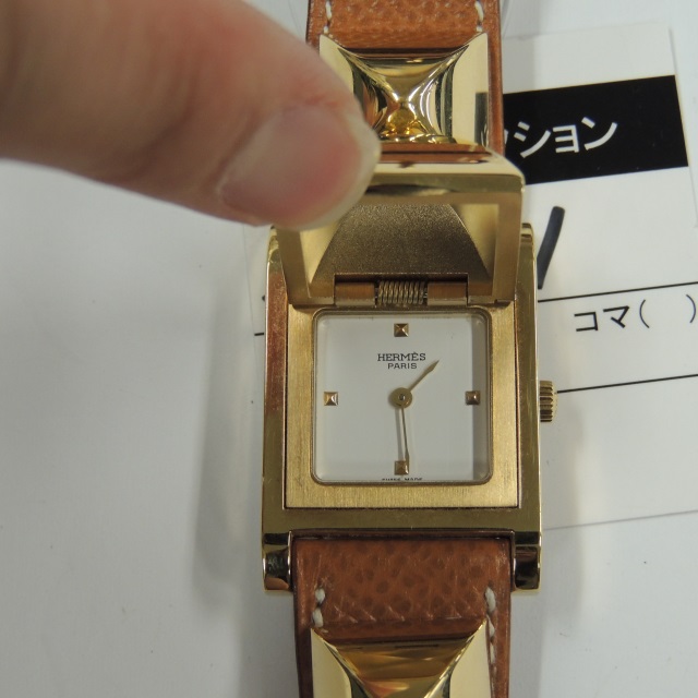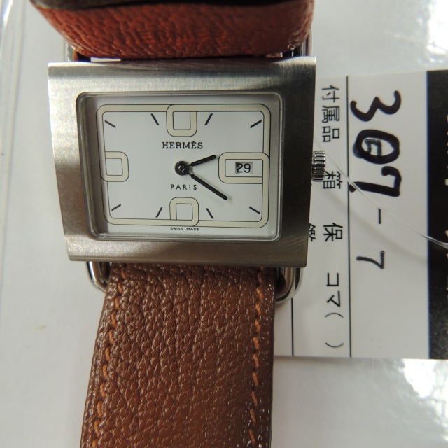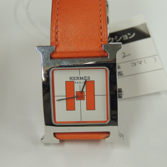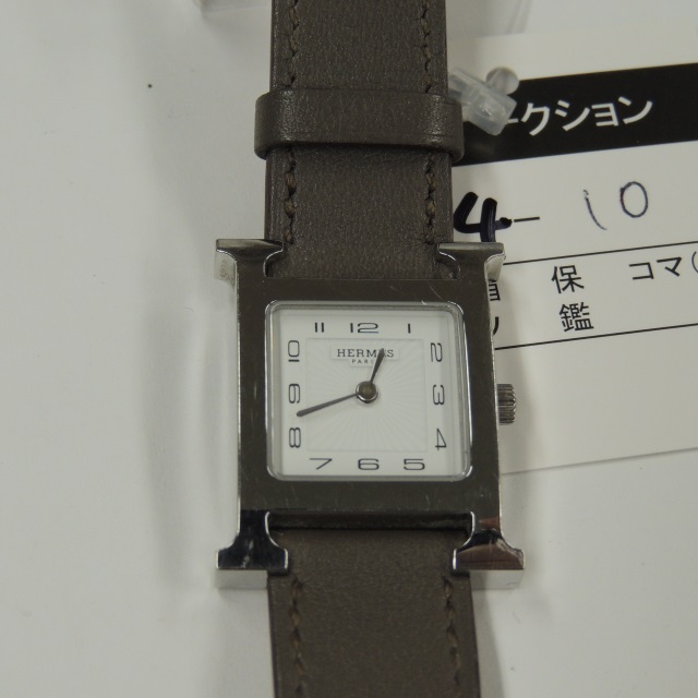 エルメス Hウォッチ HH1.210 QZ 白 □P刻 SS/革 ケース ベルト
