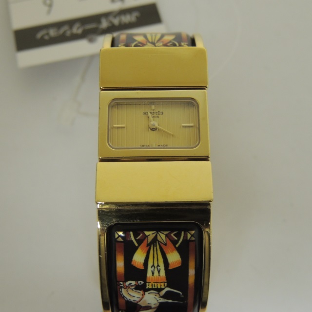 エルメス Hウォッチ RS1.201 白 QZ SS/GP/革 箱 保
