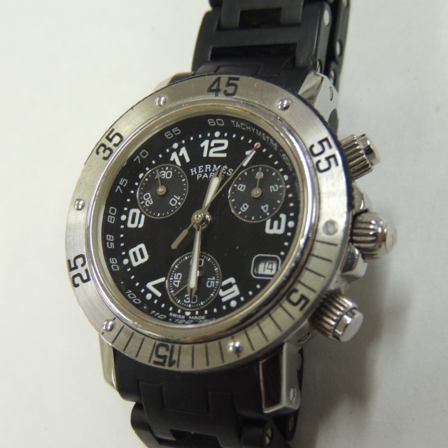 エルメス クリッパーダイバークロノ CL2.915 竜頭しまらない SS/ラバー 保