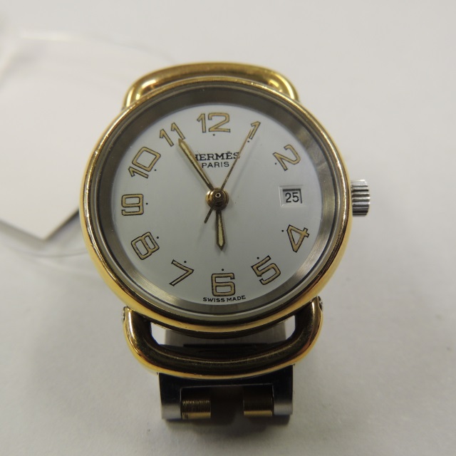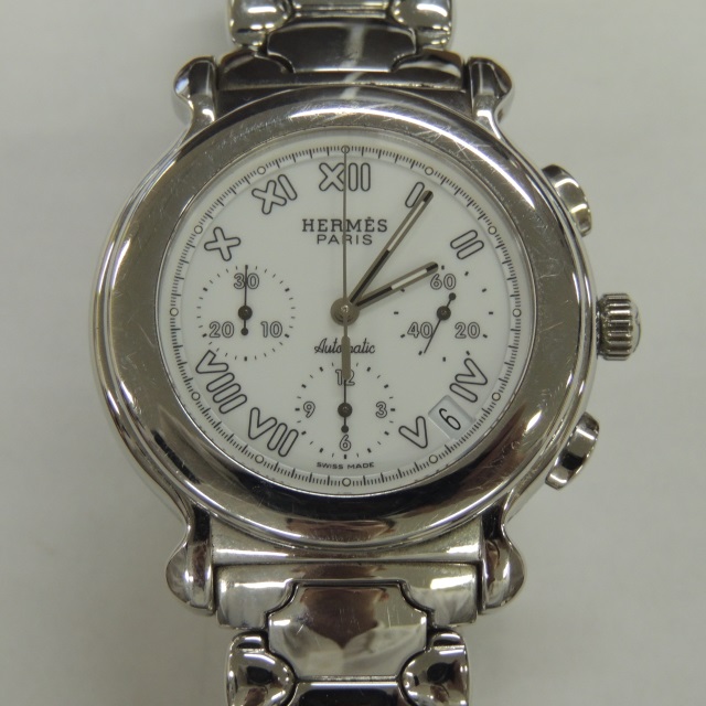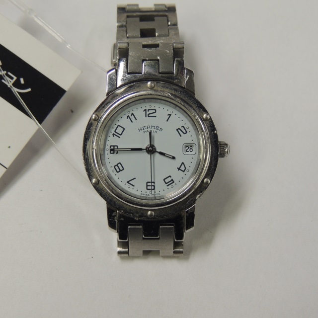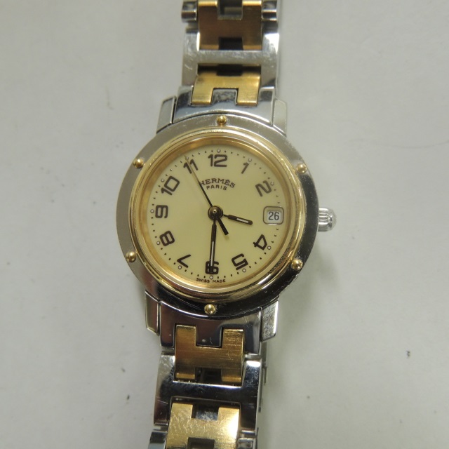 エルメス クリッパー CL4.220 QZ 白 ブレス新型 SS/GP