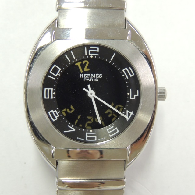 エルメス TA1.230 銀 QZ タンデム 電池交換・仕上げ済 ベゼルダイヤ SS/革 箱 保
