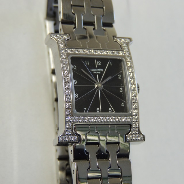 エルメス Hウォッチ HH1.230 黒 ダイヤ SS 箱