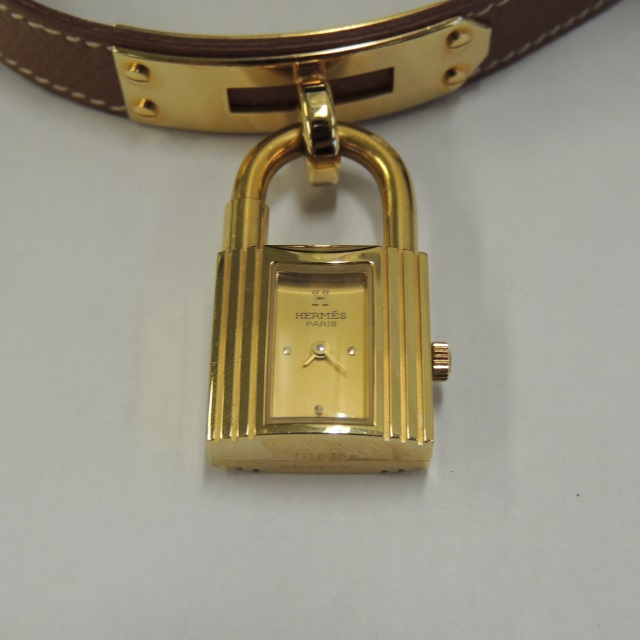 エルメス ケリーウォッチ QZ Z刻 茶 GP/革