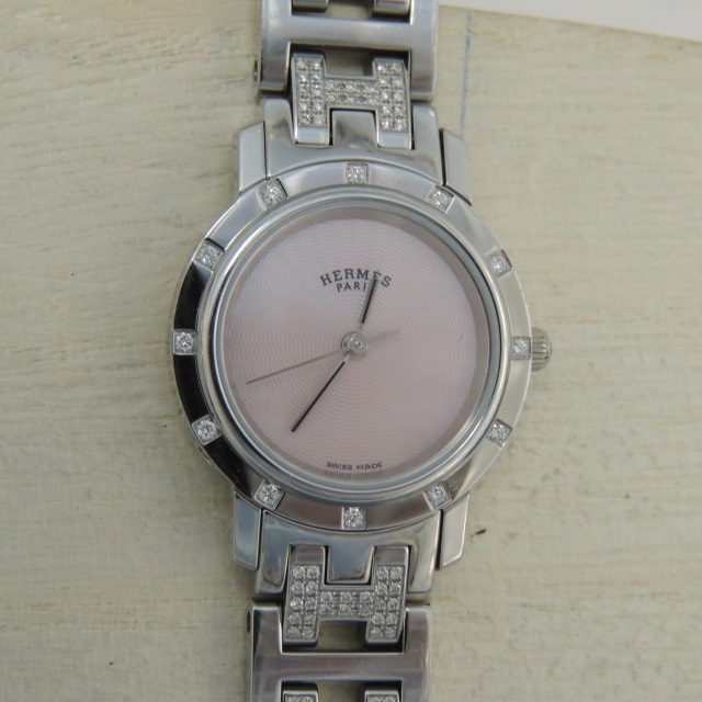 エルメス クリッパーナクレ C4.230.217/3870 ピンク 12Pダイヤベゼル ダイヤブレス QZ SS 箱 保