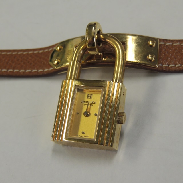 エルメス ケリー ウォッチ ドゥブルトゥール KE1.210 シルバー QZ 口G刻 SS/革