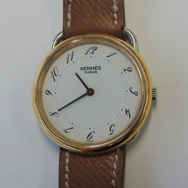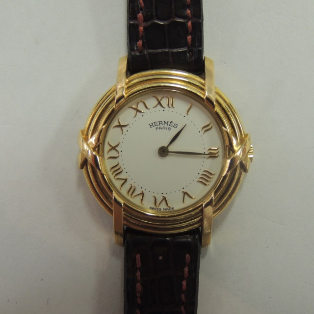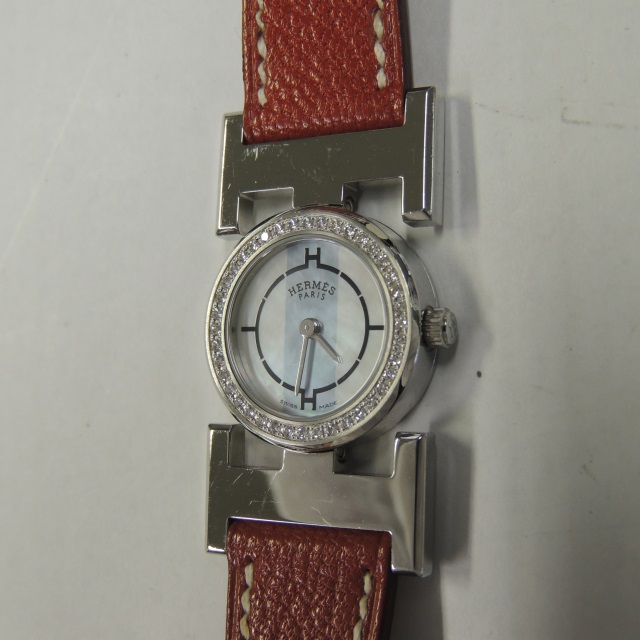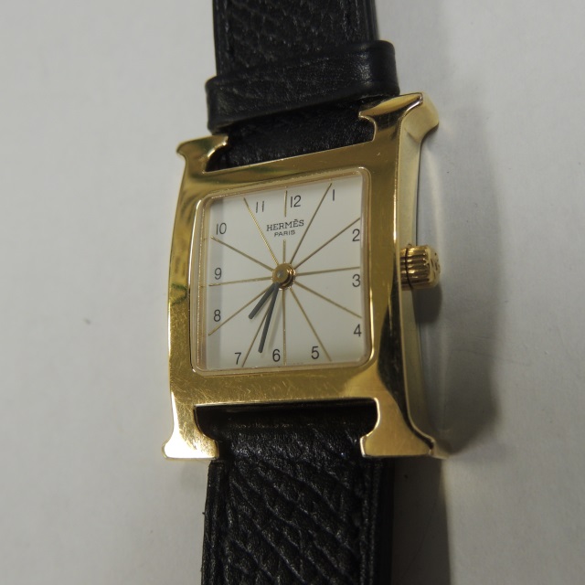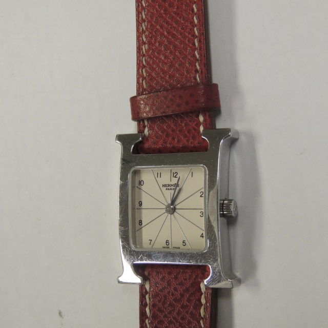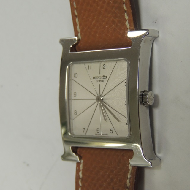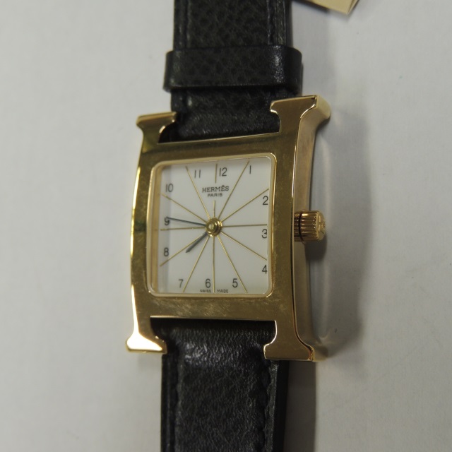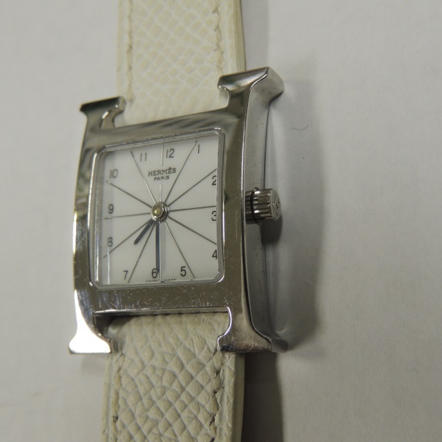エルメス Hウォッチ HH1.201 白 □F QZ GP/革 箱