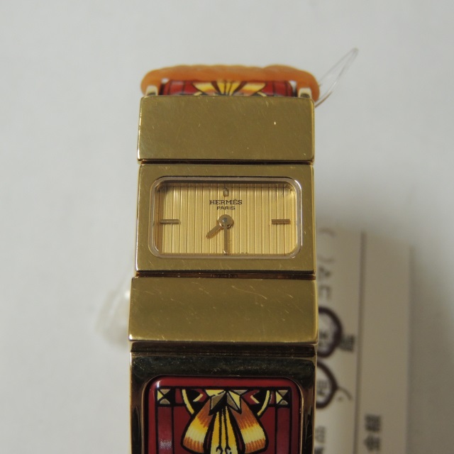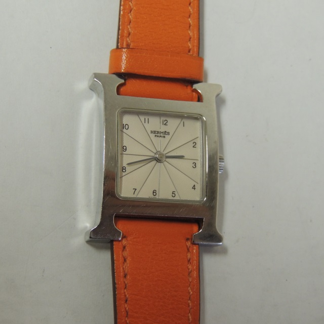 エルメス Hウォッチ QZ オレンジベルト M刻 SS/革