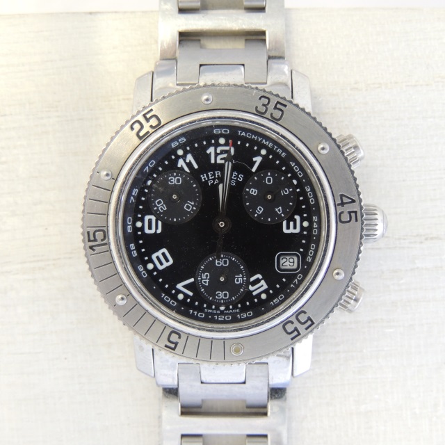 エルメス クリッパークロノ CL2.310 黒 QZ SS コマ2