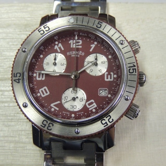 エルメス クリッパー ダイバークロノ CL2.918 ボルドー QZ SS