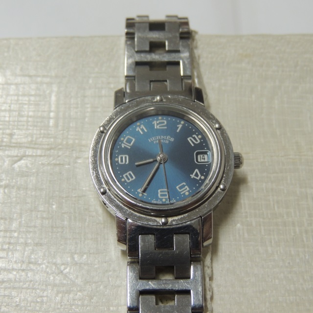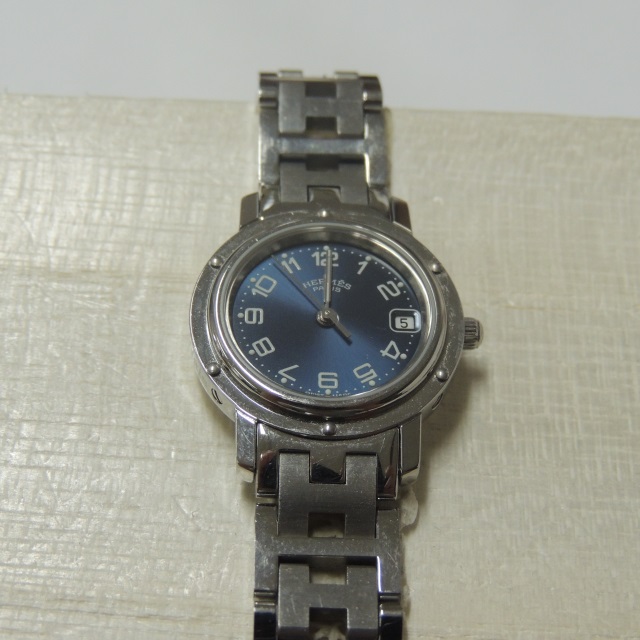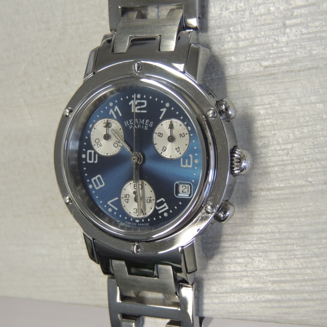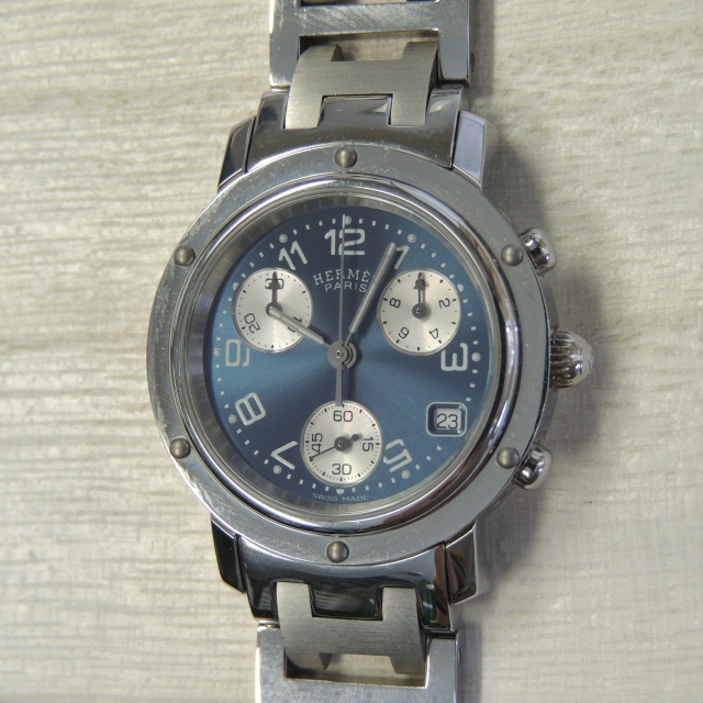 エルメス クリッパークロノ CL1.310 青 QZ SS 箱