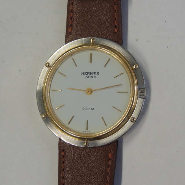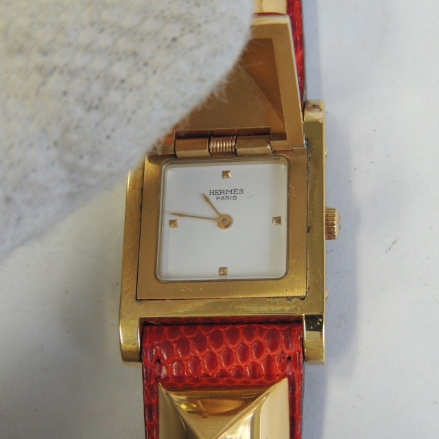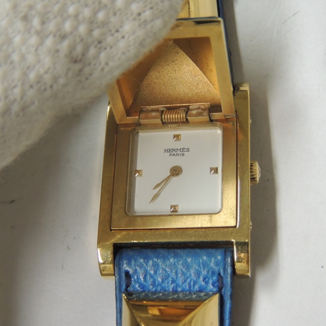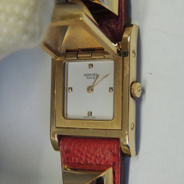 エルメス メドール QZ 白 GP/革 箱