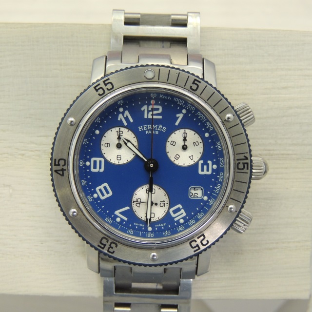 エルメス クリッパークロノ CL2.917 QZ 青 SS