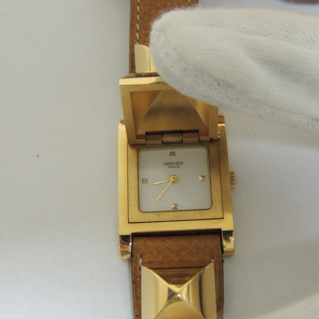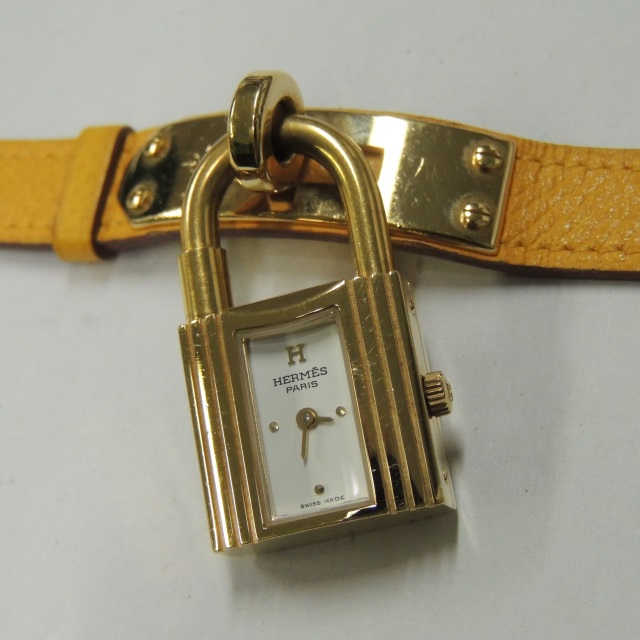 エルメス ケリーウォッチ 白 ○Y GP/革 箱