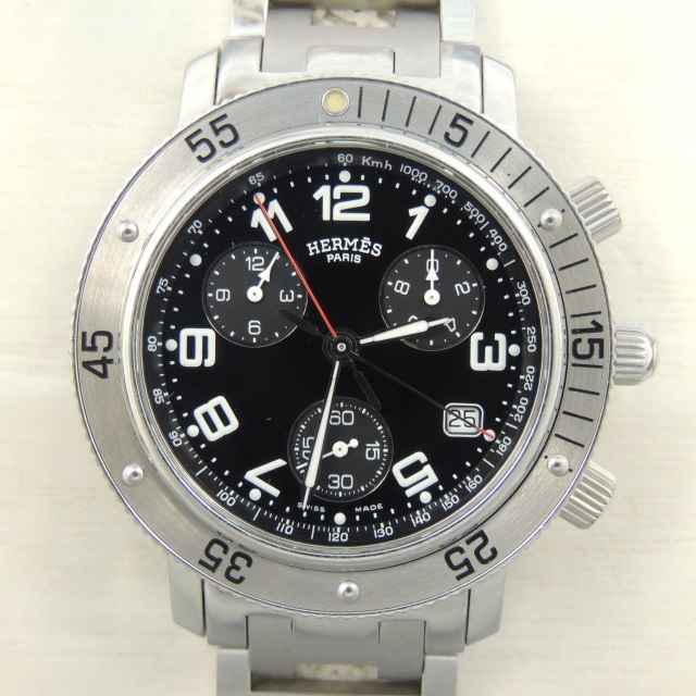 エルメス クリッパーダイバー クロノ CL2.910 黒 QZ SS 箱 保 コマ1