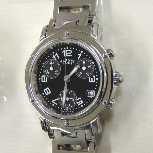 エルメス クリッパークロノ CL1.310 黒 QZ SS 箱 参280,000