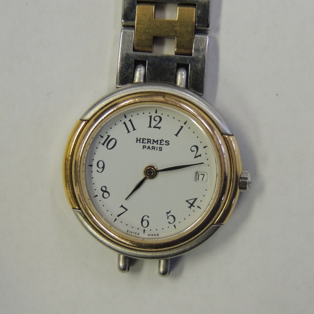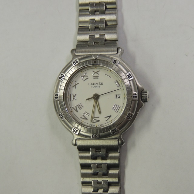 エルメス クリッパー 旧 QZ レディース 白 GP/SS