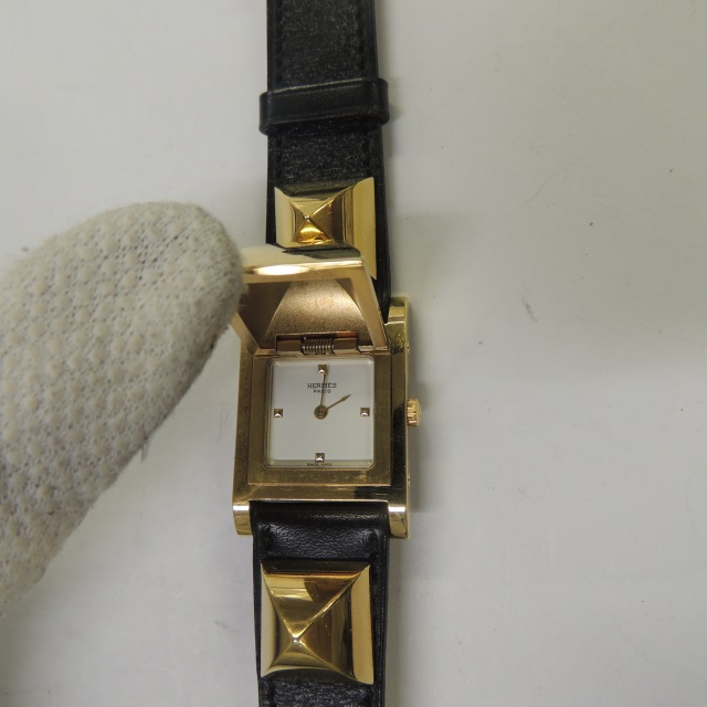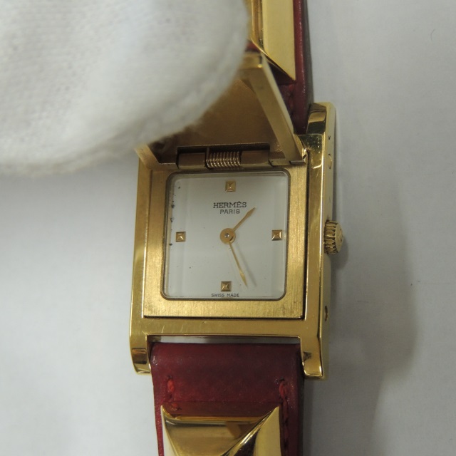 エルメス メドール 赤/金 GP/革 箱 保