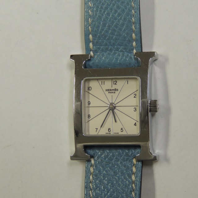エルメス Hウォッチ QZ シルバー/ブルージーン HH1.210 □F SS/革 箱