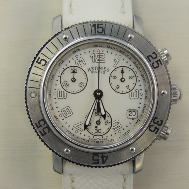 エルメス クリッパーダイバークロノ QZ 白シェル Dバックル CL2.310 □N SS/革 箱 保 参300,000