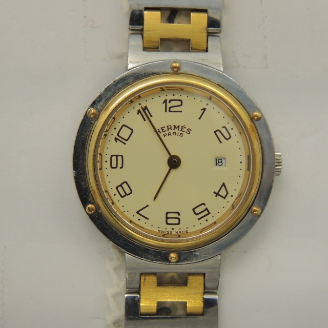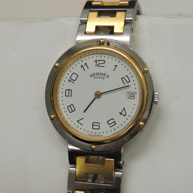 エルメス クリッパー CL4.210 QZ 白 ▲BT切れかけ SS